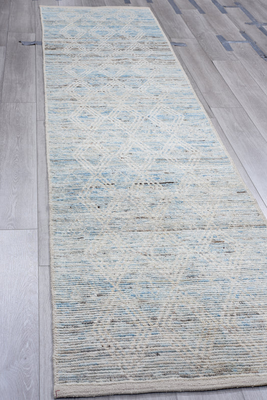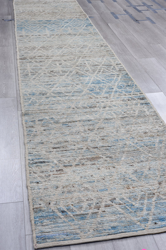 Moroccan Handmade Runner 3 X 14 |Blue, Beige, Brown | Hand knotted (4419)