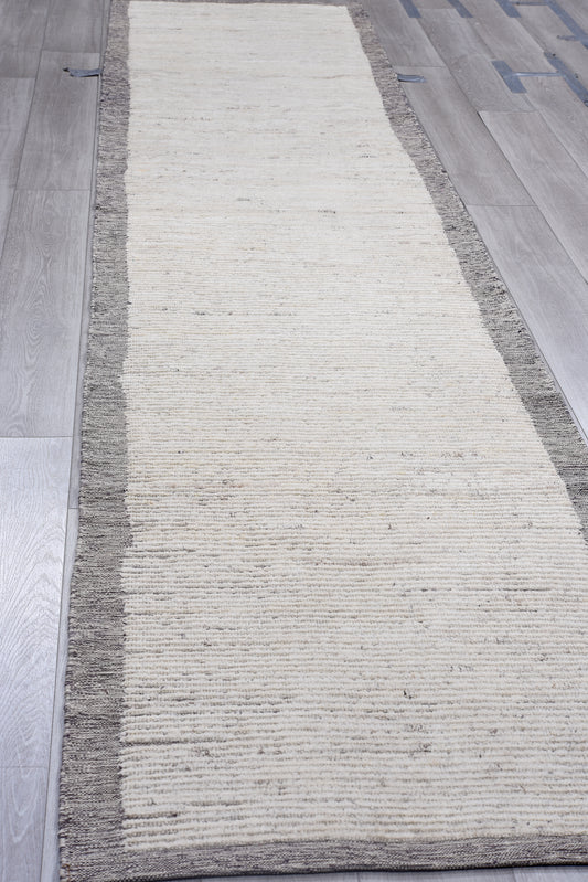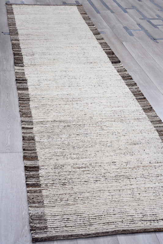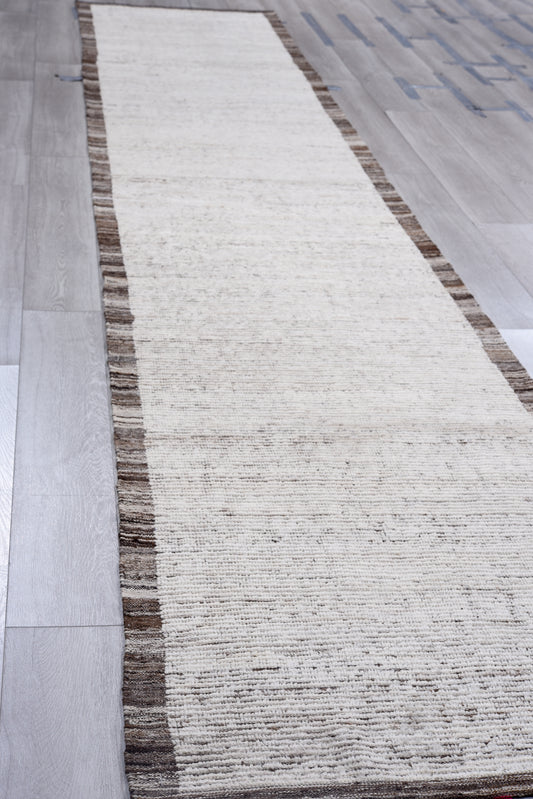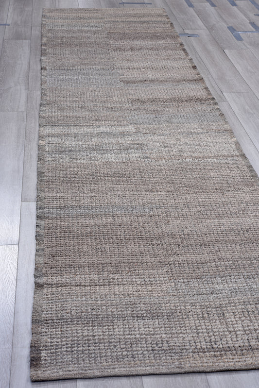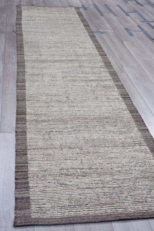 Moroccan Handmade Runner 3 X 13 | Grey, Brown | Hand knotted (4360)