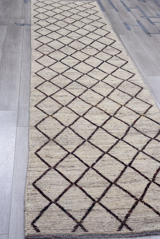 Moroccan Handmade Runner 3 X 14 |Beige, Dark Brown | Hand knotted (4398)