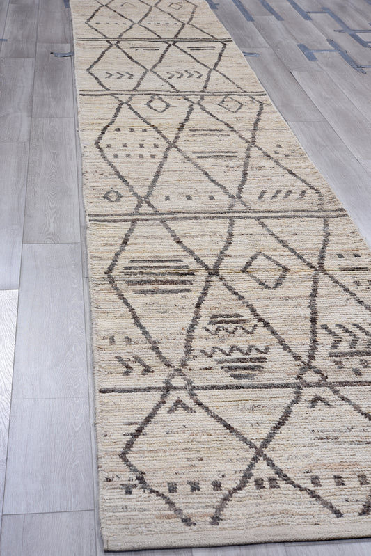 Moroccan Handmade Runner 3 X 16, | Black, Beige | Hand Knotted (4363)