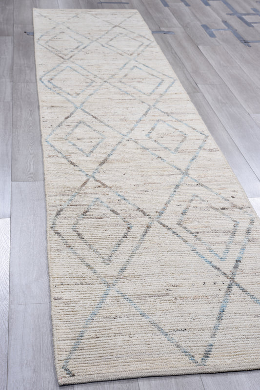 Moroccan Handmade Runner 3 X 13 |Beige, Blue, Sky Blue, Yellow, White, purple Black, Red| Hand knotted (4371)