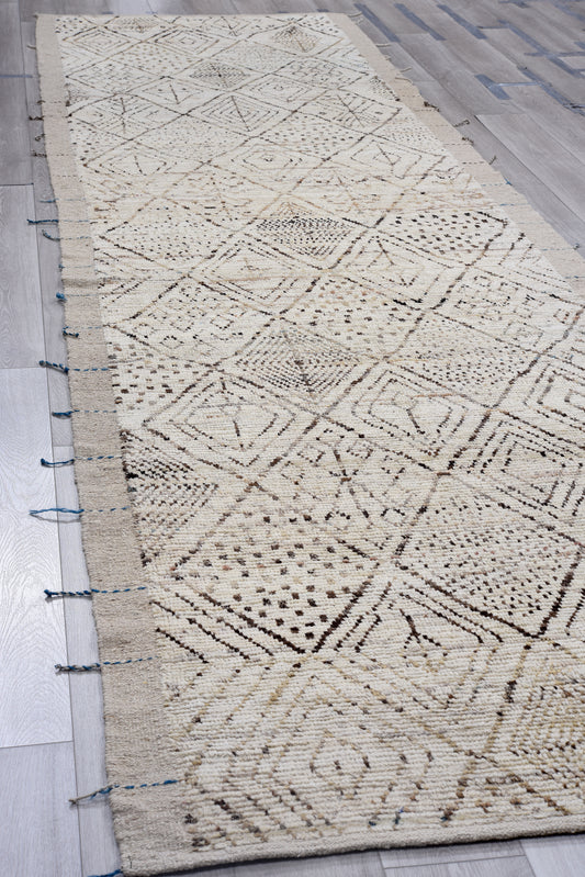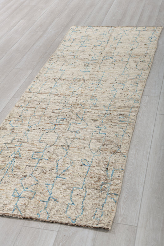 Moroccan Handmade Runner 3 X 9 | Beige, Blue, Brown | Hand knotted (3208)