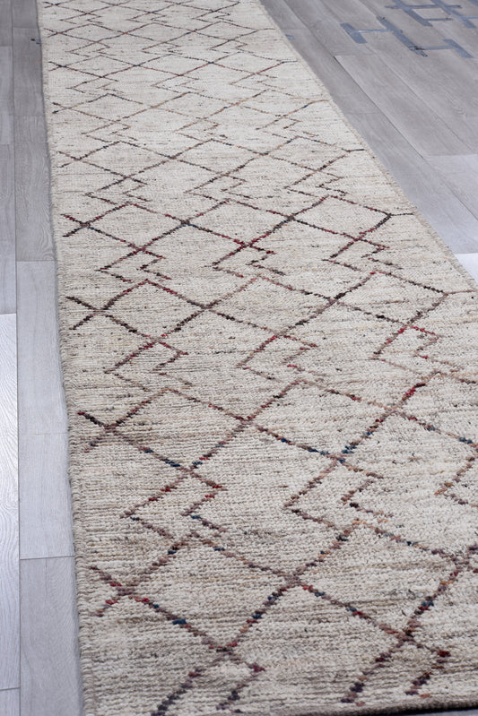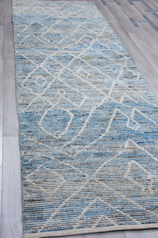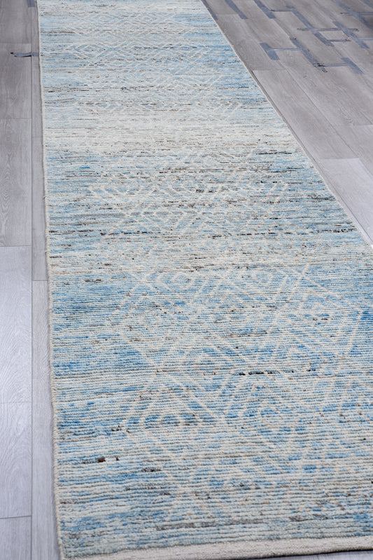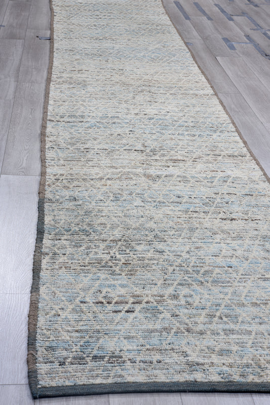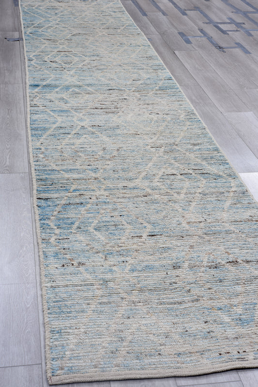 Moroccan Handmade Runner 4 X 13 |Blue, Beige, White| Hand knotted (4343)