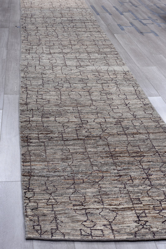 Moroccan Handmade Runner 4 X 17 | Grey, Blue, Beige, Black, Brown, Bronze | Hand knotted (4352)