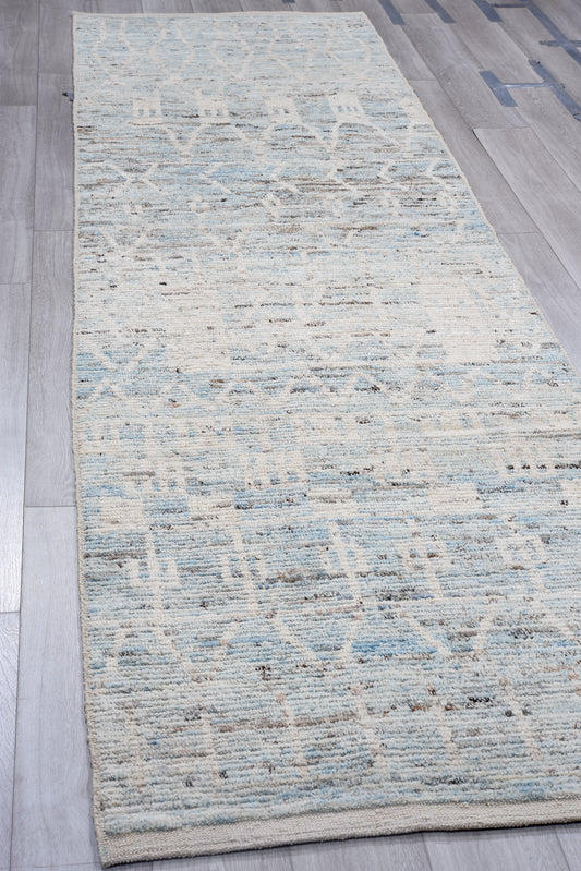 Moroccan Handmade Runner 3 X 17 |White, Gray Blue | Hand knotted (4396)
