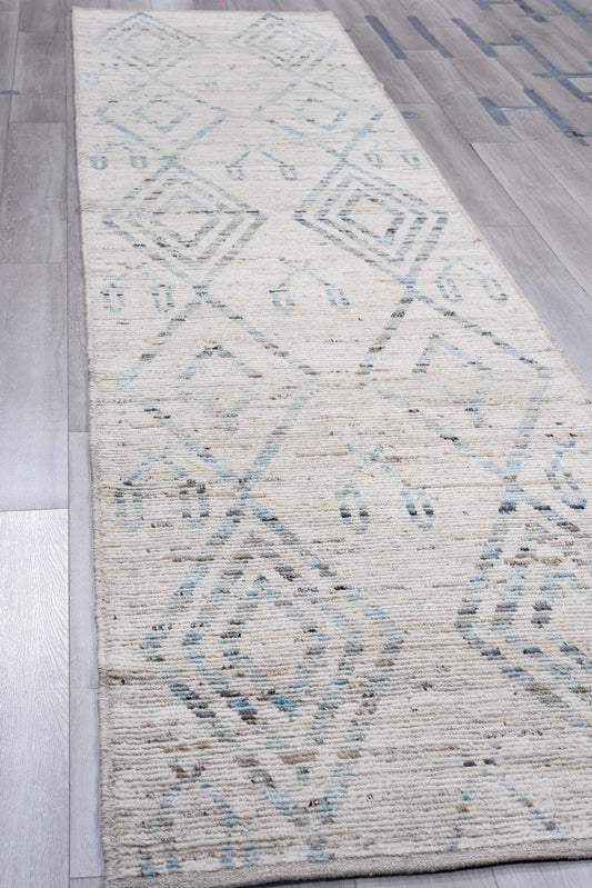 Moroccan Runner 3 X 10 |100 % Wool | Hand knotted | beige, brown design runner (3098)