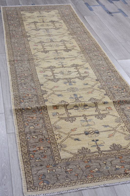 Oushak Handmade Runner 3 X 11 |Beige, Gray, Pink | Hand knotted (4391)