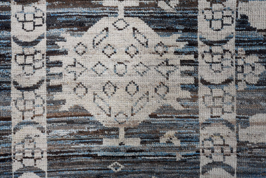Moroccan Handmade Runner 6 X 20 | Grey, Blue, Black, white| Hand knotted (4413)