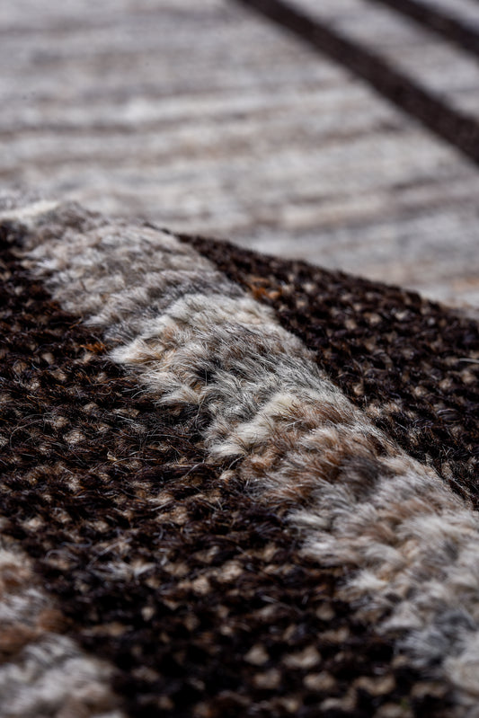 Moroccan vertical stripes handmade 13 X 15 | black, beige, gray | hand knotted (5014)