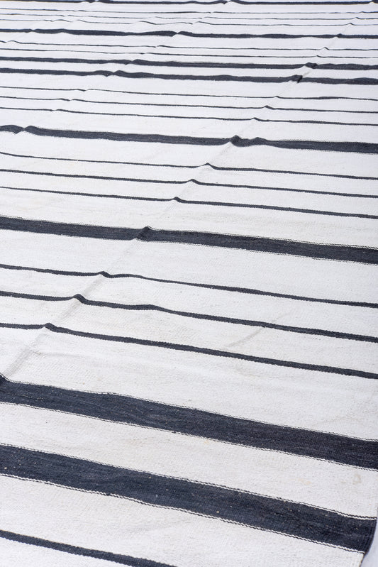 Modern Kilim flat weave | 13 x 19 | Area Rug | tribal design | White, Black | hand woven (3408)