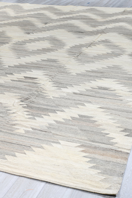 Modern Kilim flat weave | 8 x 12 | Area Rug | tribal design | Grey, Beige, Brown | hand woven (4272)