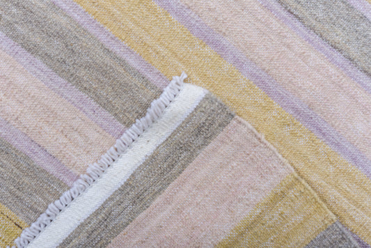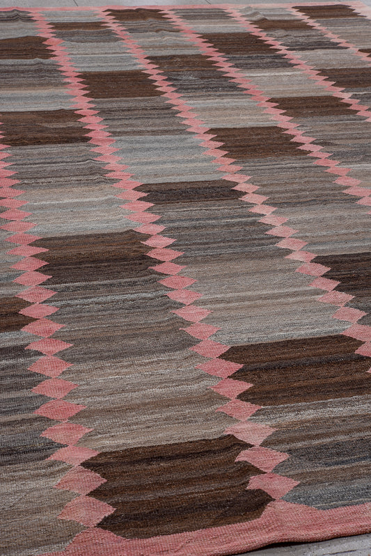 Modern Kilim flat weave | 11 x 16 | Area Rug | tribal design | pink, brown, beige, grey | hand woven (5033)