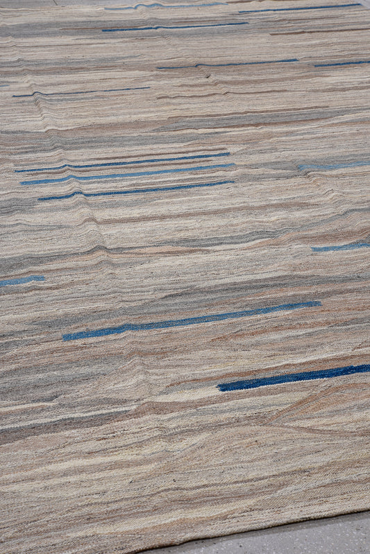 Modern Kilim flat weave | 11 x 14 | Area Rug | tribal design | brown, beige, grey, blue, sky blue | hand woven (5039)
