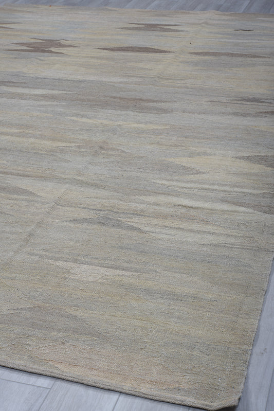 Modern Kilim flat weave | 13 x 16 | Area Rug | tribal design | Beige, Gray | hand woven (4080)