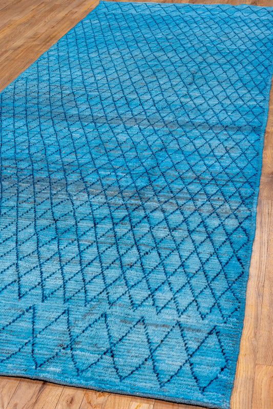 Moroccan Handmade Runner 5 X 13 |Blue, Dark Blue, Grey | Hand knotted (1798)